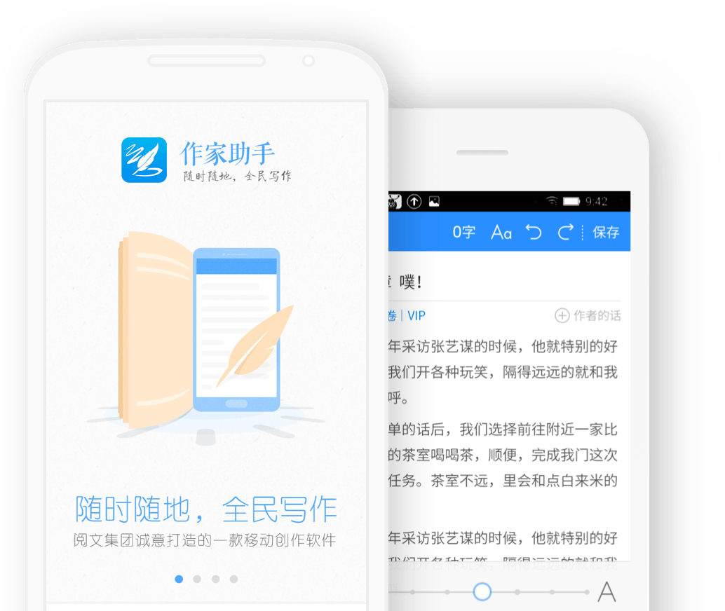作家助手是阅文集团诚意打造的一款移动创作应用,覆盖 Android、iOS 等主流移动平台,凭借流畅的用户体验、强大的创作工具、可视化的统计分析等优势,迅速成为市场上深受作家喜爱的移动创作应用之一。